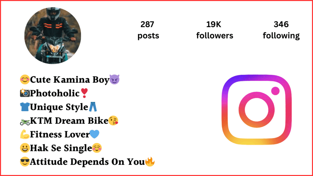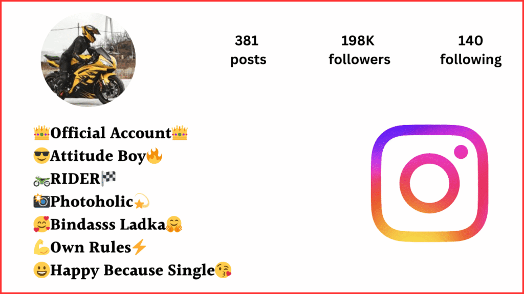 अगर आप Bike Rider Bio For Instagram ढूंढ रहे हैं, तो समझिए आप बिल्कुल सही जगह पर आ चुके हैं। यहाँ आपको बाइक राइडर्स के लिए खास तौर पर तैयार किए गए Instagram Bio मिलेंगे, जो आपकी राइडिंग स्टाइल और पैशन को बखूबी दर्शाते हैं। चाहे आप एक प्रो बाइक लवर हों या सिर्फ राइडिंग के शौकीन, ये Bio आपके Instagram प्रोफाइल को एक अलग पहचान देंगे। इन बायो को इस तरह लिखा गया है कि ये आपकी पर्सनैलिटी से पूरी तरह मैच करें और देखने वाले पर गहरी छाप छोड़े। आपको ऐसे दमदार और यूनिक Bike Rider Bio For Instagram शायद ही कहीं और मिलें। बस अपना पसंदीदा bio चुनिए, कॉपी कीजिए और सीधे अपने Instagram Bio में लगा दीजिए।
