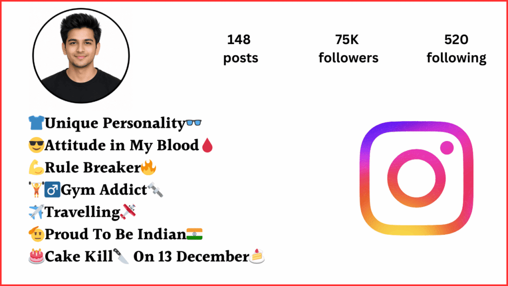 दोस्तों, आज की इस पोस्ट में हम आपके लिए Instagram Bio For Boy का एक शानदार और लेटेस्ट कलेक्शन लेकर आए हैं। आज के समय में Instagram पर आपकी प्रोफाइल आपकी पहचान होती है, और उस पहचान को दिखाने में आपका बायो सबसे अहम रोल निभाता है। एक अच्छा इंस्टाग्राम बायो आपकी सोच, स्टाइल और एटीट्यूड को कम शब्दों में लोगों तक पहुंचा देता है।