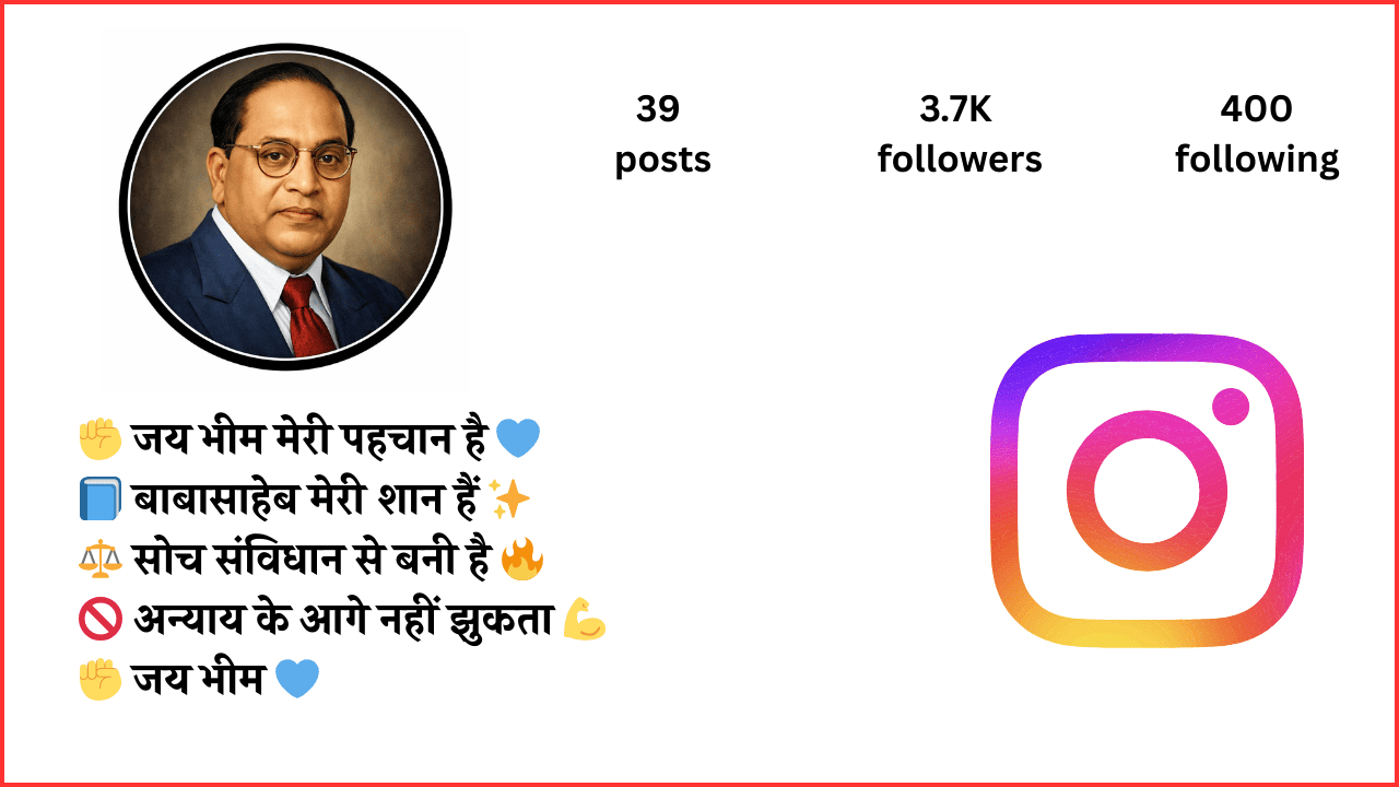 आज के समय में Instagram सिर्फ एक सोशल मीडिया प्लेटफॉर्म नहीं है, बल्कि यह अपनी पहचान, विचारधारा और आत्मसम्मान को दिखाने का ज़रिया बन चुका है। जो लोग बाबासाहेब डॉ. भीमराव अंबेडकर के विचारों को मानते हैं और “जय भीम” का गर्व अपनी प्रोफाइल में दिखाना चाहते हैं, उनके लिए एक दमदार Jay Bhim Bio For Instagram होना बहुत ज़रूरी है। सही Instagram Bio आपकी सोच, आत्मविश्वास और एटीट्यूड को कुछ शब्दों में बखूबी दर्शाता है।