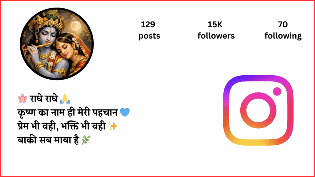 आज के डिजिटल दौर में Instagram सिर्फ एक सोशल मीडिया प्लेटफॉर्म नहीं, बल्कि अपनी पहचान, सोच और आस्था को व्यक्त करने का माध्यम बन चुका है। जब बात Radhe Krishna Bio For Instagram In Hindi की आती है, तो यह केवल कुछ शब्द नहीं होते, बल्कि प्रेम, भक्ति और विश्वास की गहराई को दर्शाते हैं।