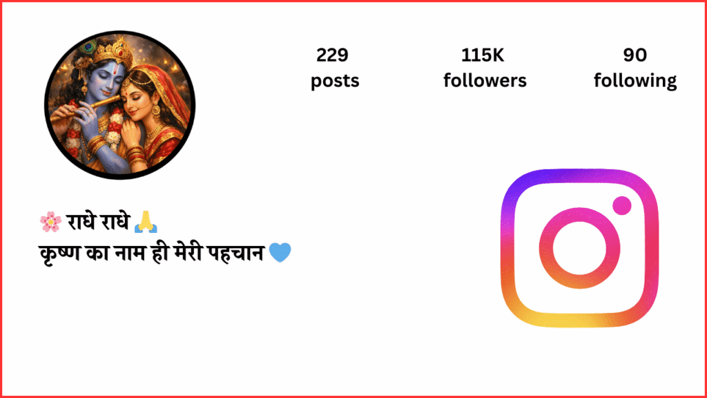श्री राधा-कृष्ण का नाम लेते ही मन में शांति, प्रेम और सकारात्मक ऊर्जा का संचार हो जाता है। बहुत से लोग अपने Instagram Bio में राधे-कृष्णा के विचार, नाम या भावपूर्ण पंक्तियाँ जोड़कर अपनी आध्यात्मिक सोच और कृष्ण-भक्ति को दुनिया के सामने प्रस्तुत करना चाहते हैं।