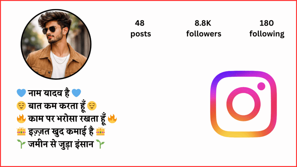 आज Instagram सिर्फ एक ऐप नहीं, बल्कि आपकी पहचान, सोच और स्वैग का सबसे मजबूत ज़रिया बन चुका है। जब कोई आपकी प्रोफाइल खोलता है, तो सबसे पहले आपकी Instagram Bio ही आपकी Personality बयान करती है। अगर आप Yadav / Ahir Community से हैं, तो आपका Bio ऐसा होना चाहिए जो आपकी शान, स्वाभिमान, रॉयल सोच और दमदार एटीट्यूड को बिना ज़्यादा शब्दों के साफ़ दिखा दे। इस पोस्ट में आपको Yadav Bio For Instagram मिलेंगे जिन्हें आप अपने इंस्टाग्राम प्रोफाइल में इस्तेमाल कर सकते हैं।